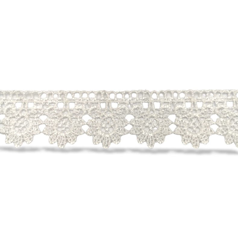 passamaneria a tema floreale, traforata e ricamata, realizzata in macramÈ bianco con disegni disposti in serie mm 40