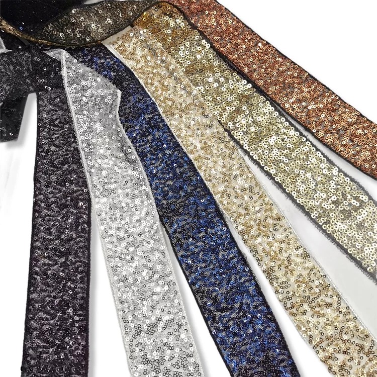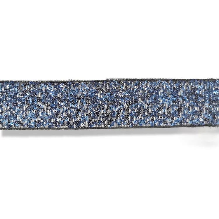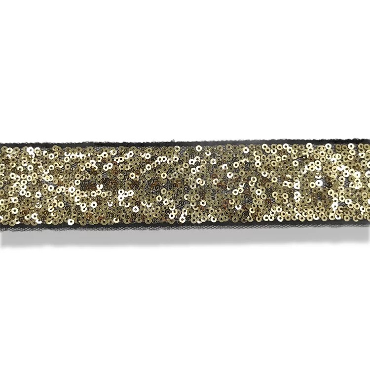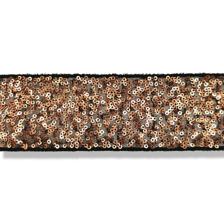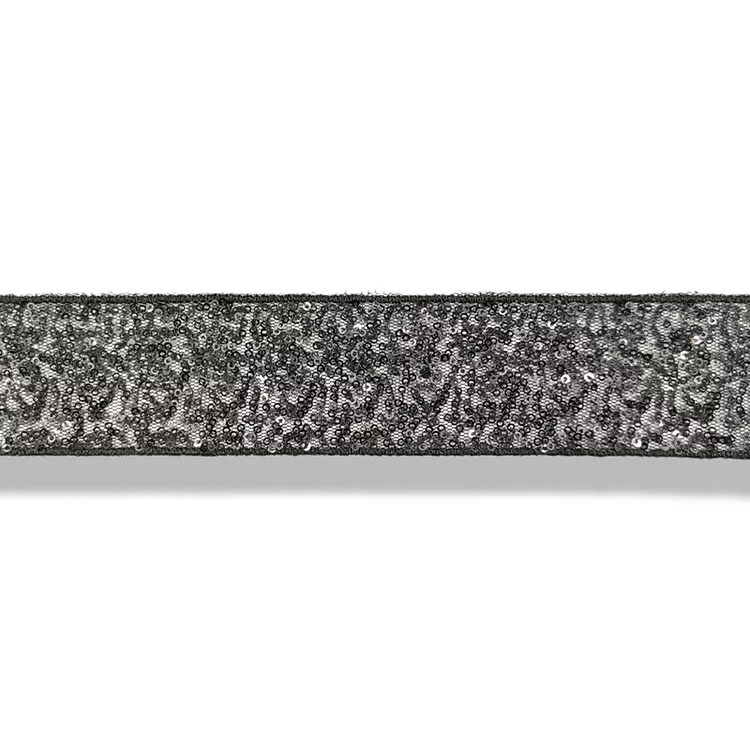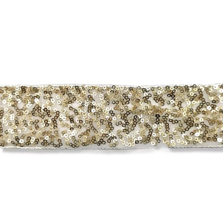 passamaneria bordata ai lati e realizzata con paillettes tonde interamente ricamate a macchina su tessuto di tulle mm 45