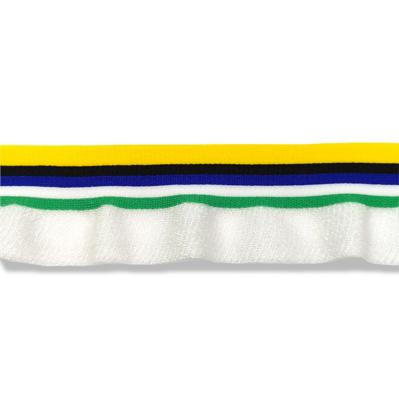 passamaneria composta da una parte superiore in maglina a linee orizzontali, mentre la parte inferiore È realizzata da una bandi
