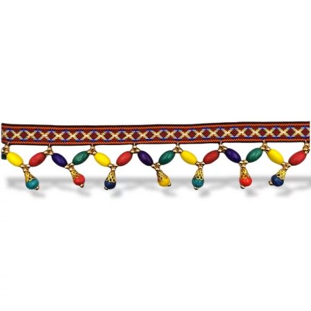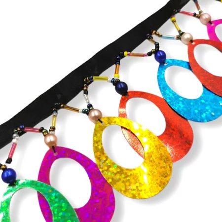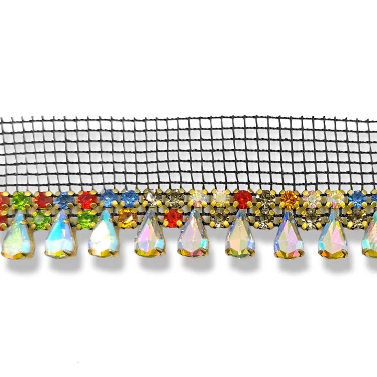 passamaneria con una base di rete nera e con catena elettrosaldata con pietre multicolor, tonde e a goccia mm 25