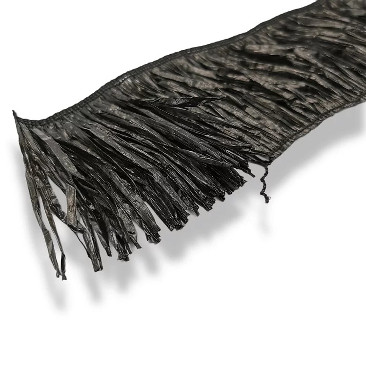 passamaneria frangia, realizzata in rafia plastificata e ricamata sul bordo superiore cm 10