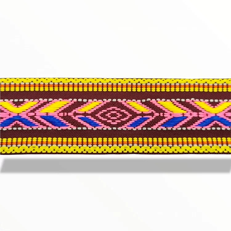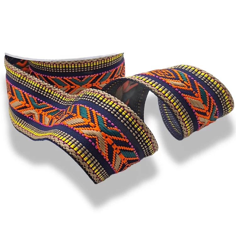 passamaneria in design etnico, realizzata in cotone/poliestere e ricamata interamente a macchina cm 5,2