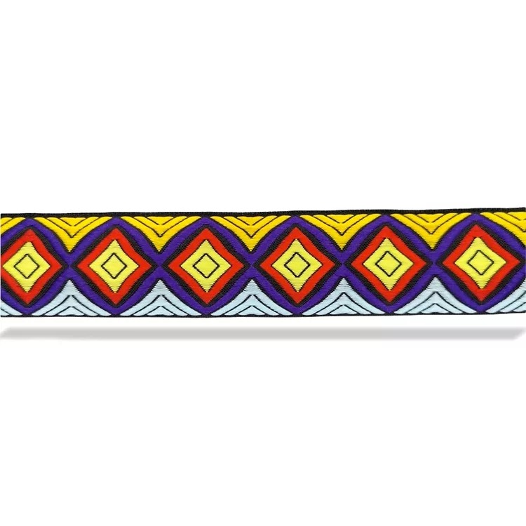 passamaneria in disegn geometrico, realizzata in cotone/poliestere e ricamata interamente a macchina cm 3.8