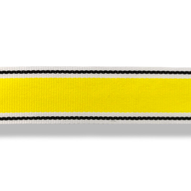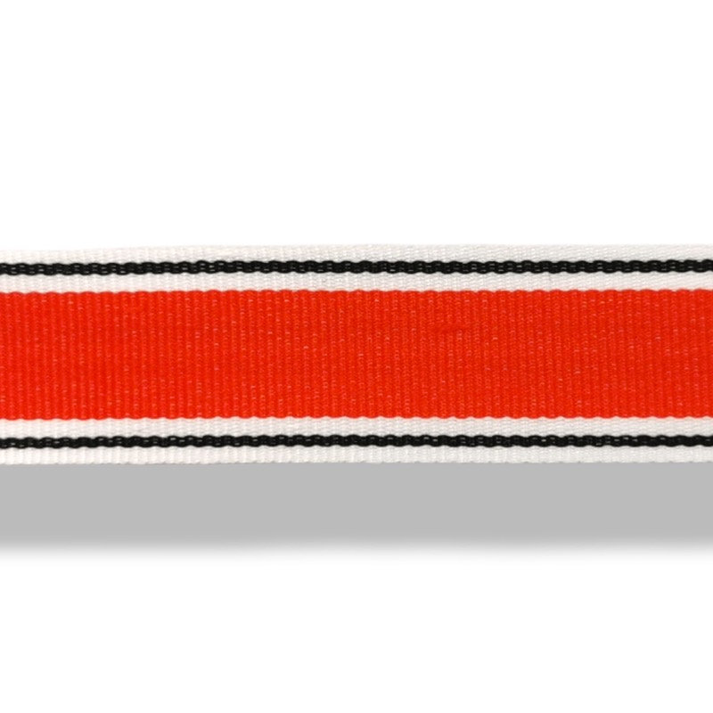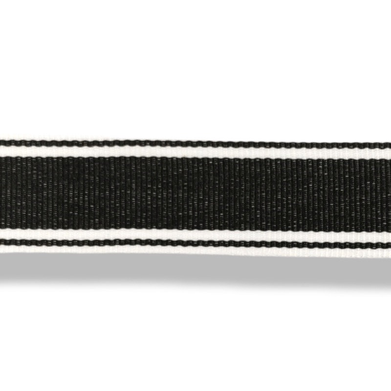 passamaneria in gros grain, realizzata con una linea colorata, centrale e orizzontale, e da righini neri e bianchi diposti later