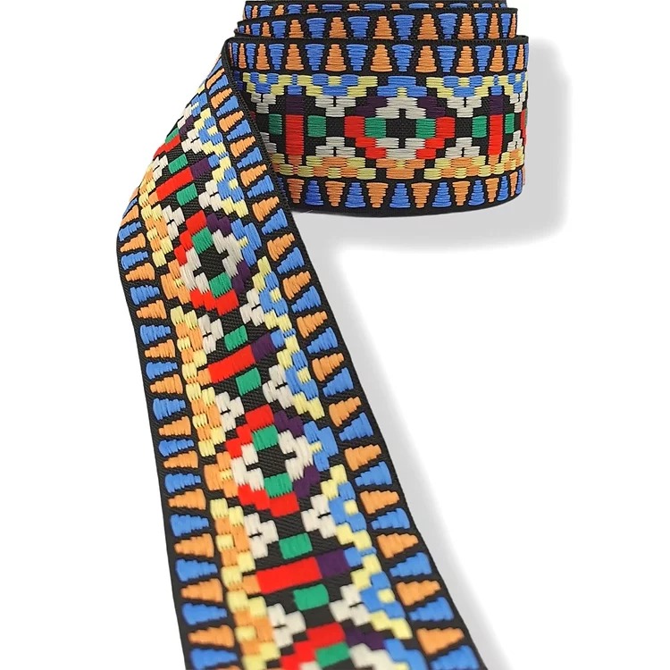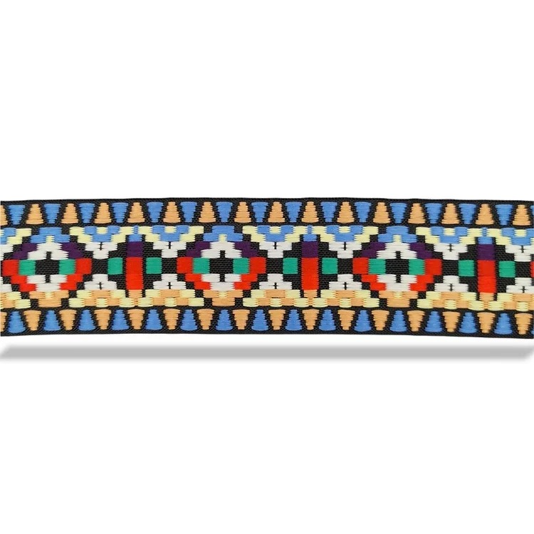 passamaneria in poliestere interamente ricamata a macchina, raffigura un desing etnico cm 4,8