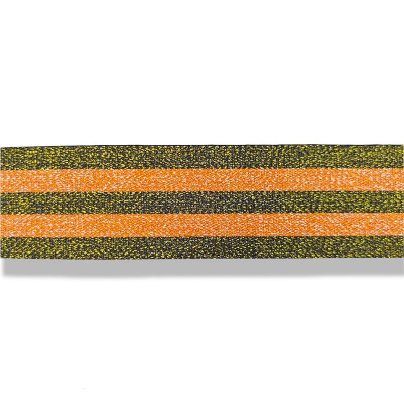 passamaneria in poliestere, realizzata con fili glitterati e composta da linee orizzontali alternate nelle due varianti di color