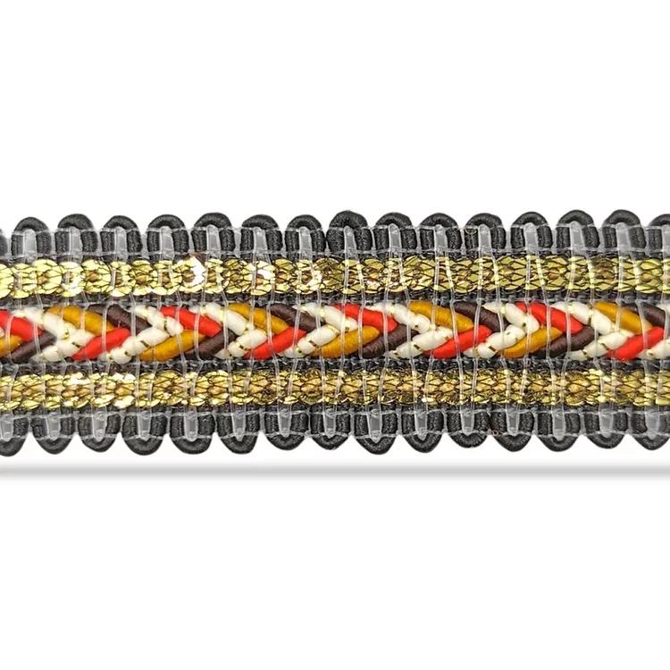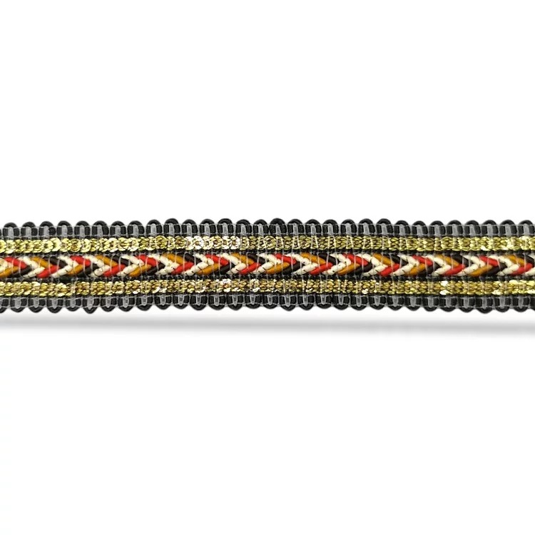 passamaneria in stile etnico, realizzata con ricamo centrale adornato lateralmente da due catene di paillettes gold 20 mm