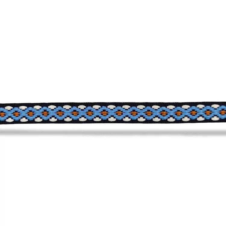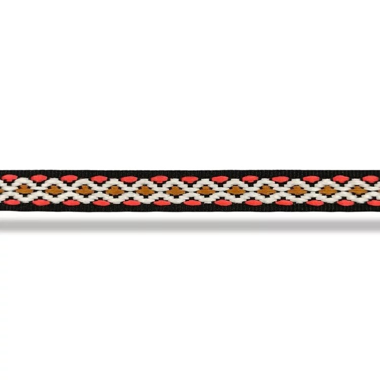 passamaneria in stile etnico realizzata su fondo nero, raffigurante delle figure geometriche in serie mm 10