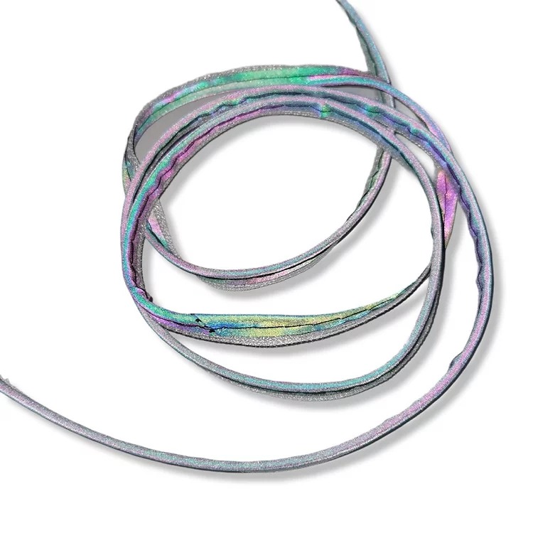 passamaneria piping coda di topo, realizzata con tessuto multicolor catarifrangente 10 mm
