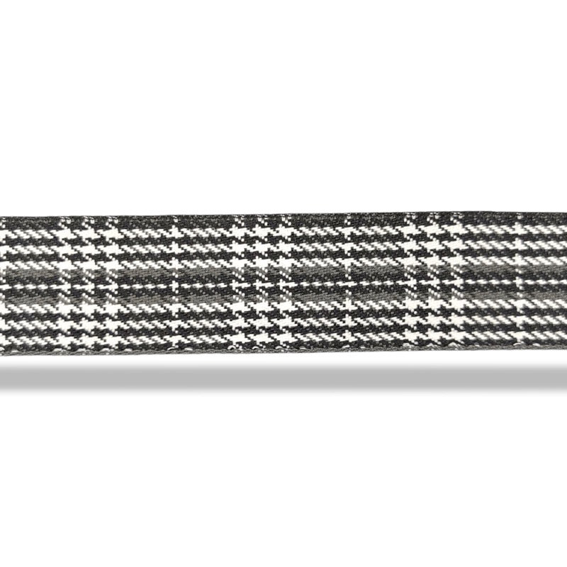 passamaneria realizzata a fantasia scozzese, ricamata interamente a macchina mm 27