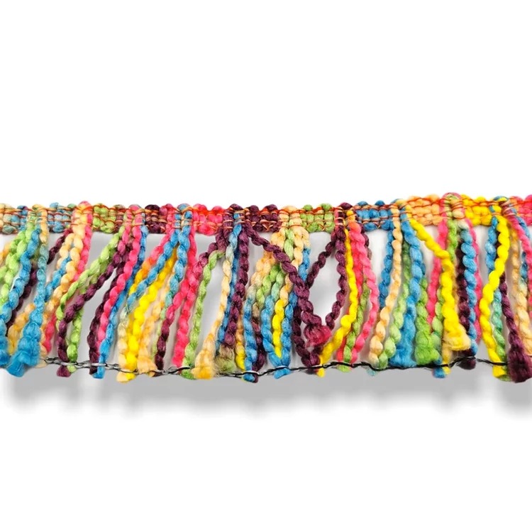 passamaneria realizzata con con fili di lana multicolor intrecciati cm 5