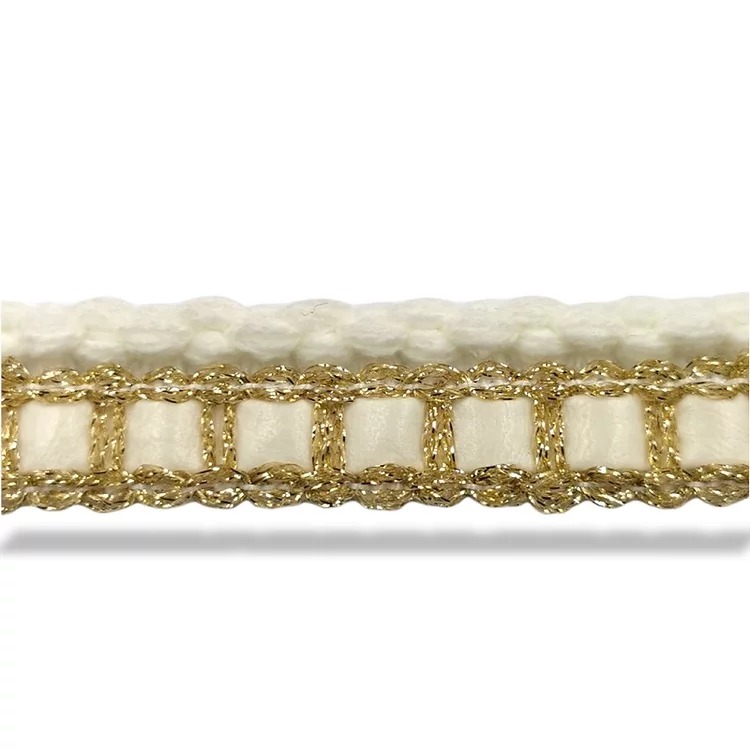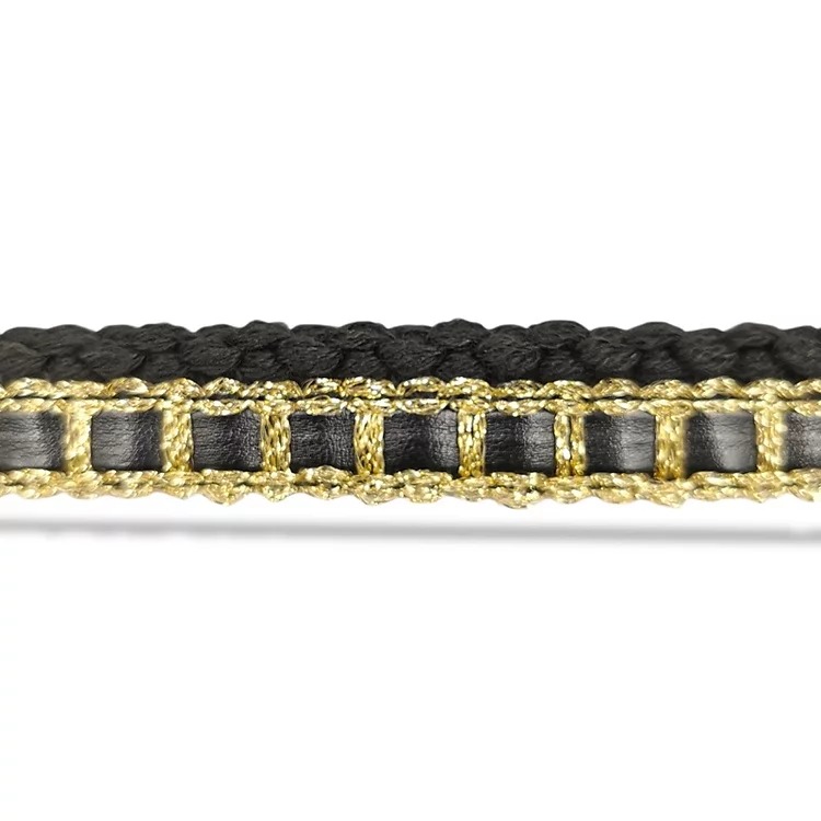 passamaneria realizzata con fili di lana intrecciati nella parte superiore, mentre la parte inferiore È formata da una bandina i