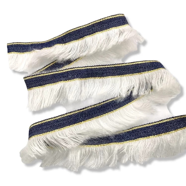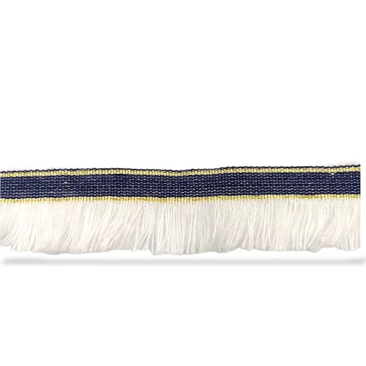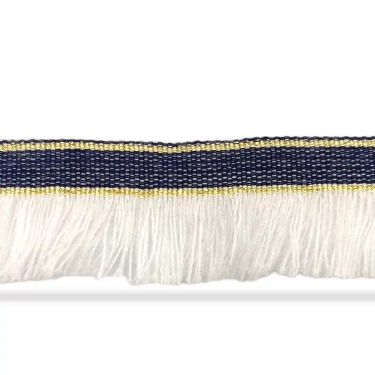passamaneria realizzata con frange in filo e una bandina con inserti in lurex oro mm 37
