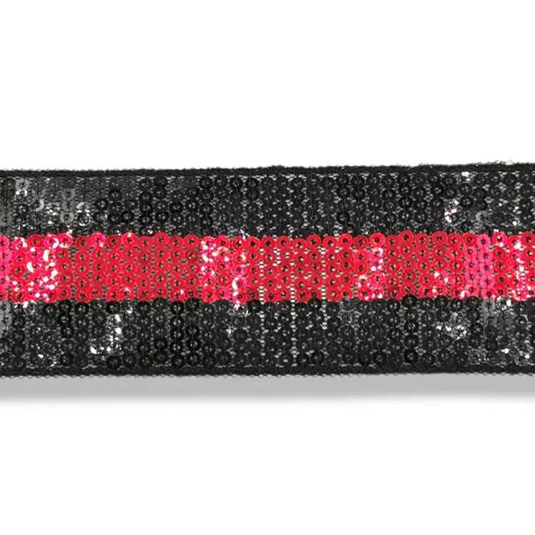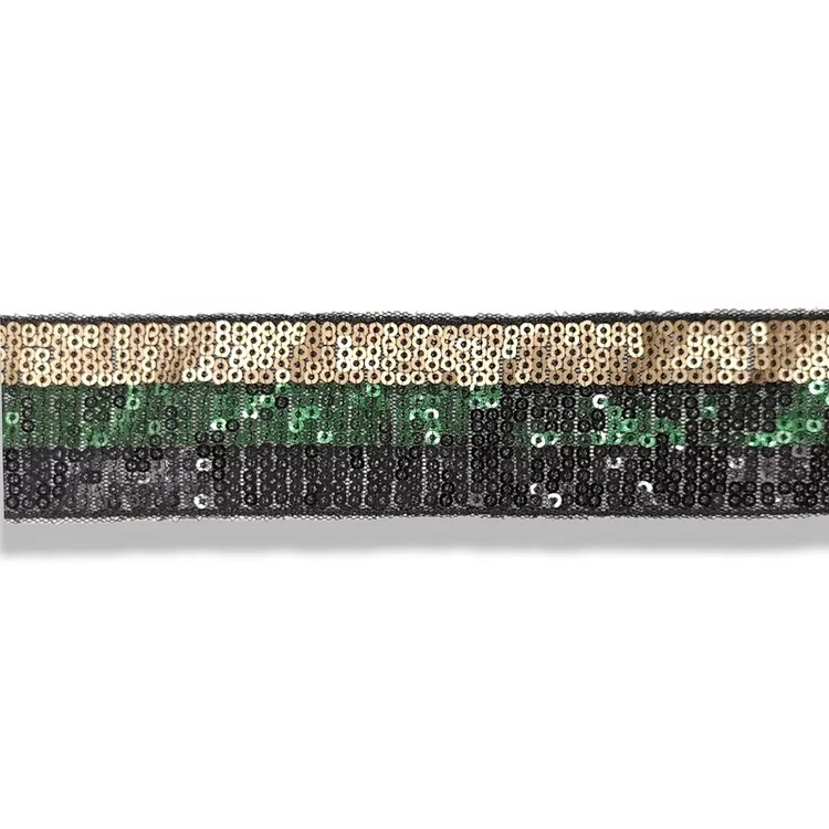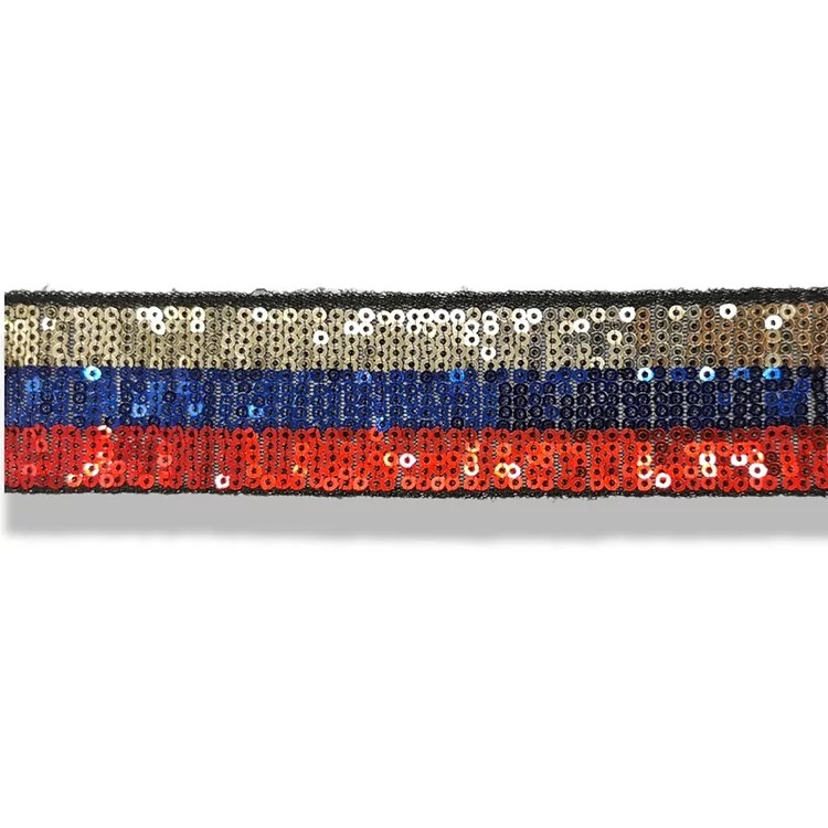 passamaneria realizzata con paillettes lucide colorate disposte su tre file orizzontali mm 40