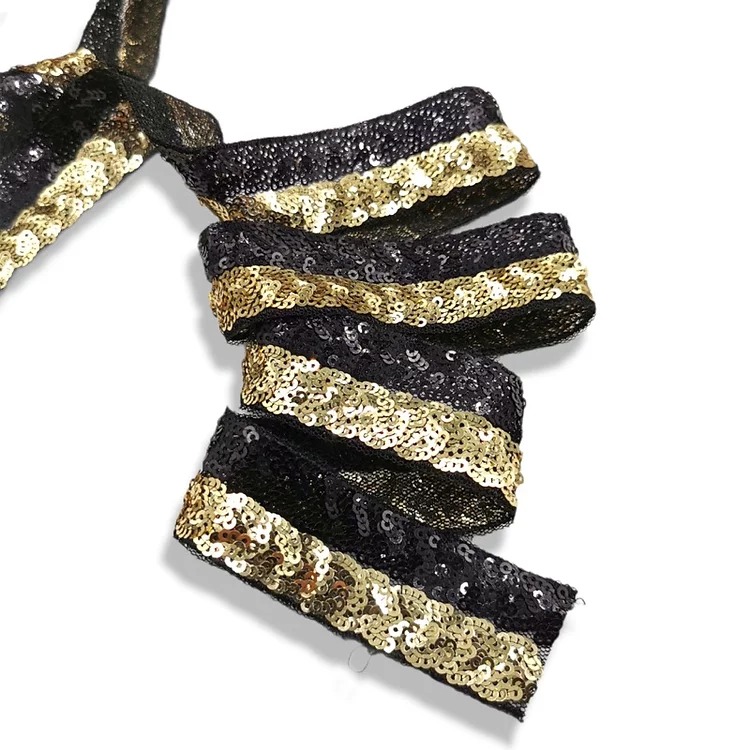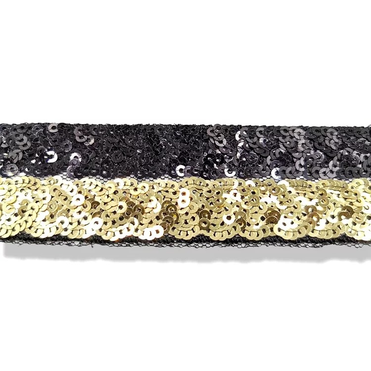 passamaneria realizzata con paillettes lucide disposte su due file orizzontali, su base di tessuto tulle color nero mm 32