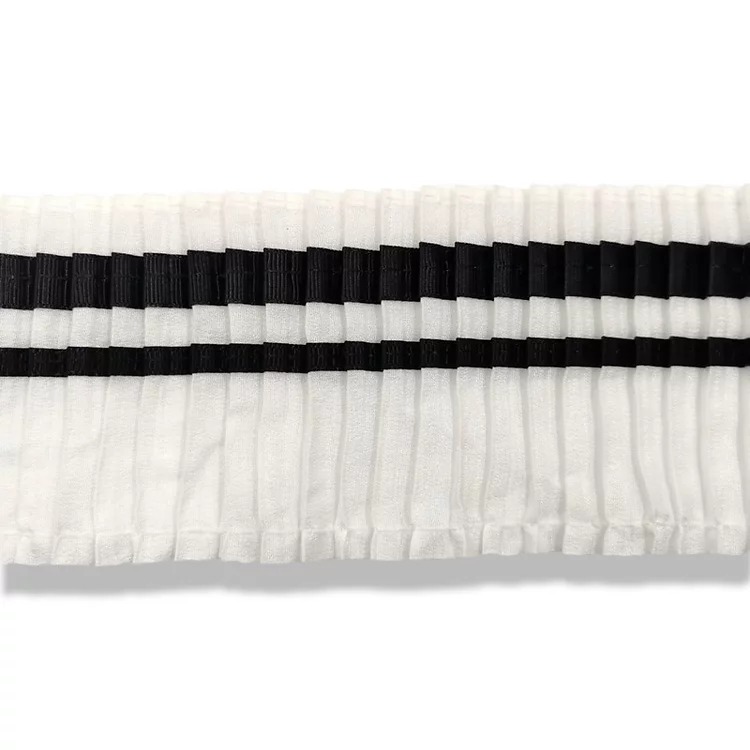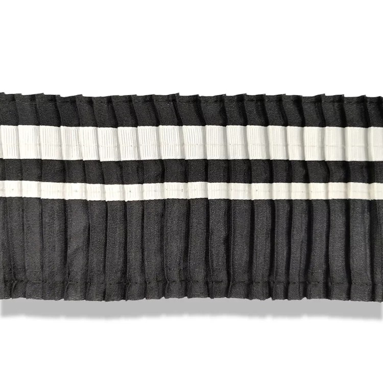 passamaneria realizzata con tessuto di organza plissettato e fasce di gros grain a contrasto mm 80