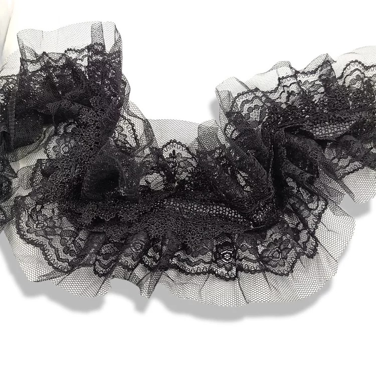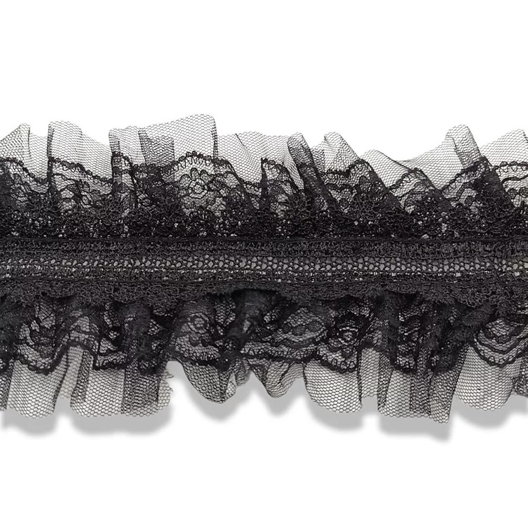 passamaneria realizzata da una fascia centrale di pizzo sovrapposta a due basi laterali d’organza cm 11