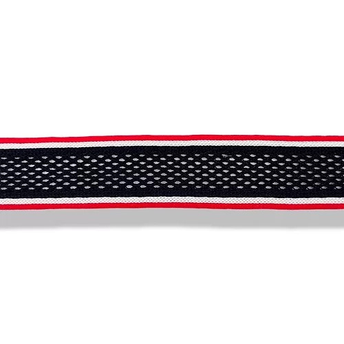 passamaneria realizzata in maglina, bordata ai lati e traforata al centro mm 25