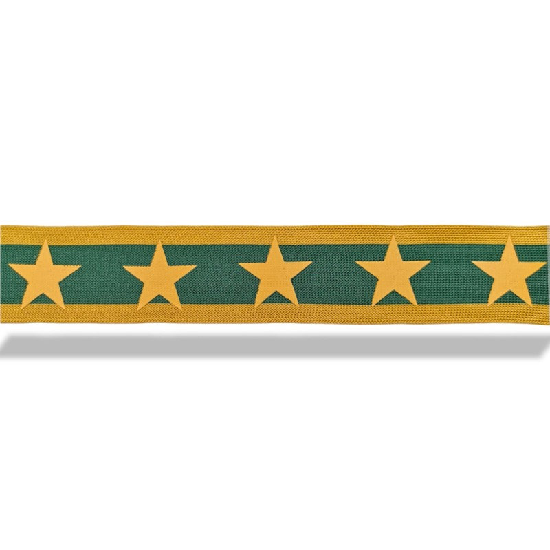 passamaneria realizzata in maglina con tre linee orizzonatali, con stelle stampate, disposte centralmente e in serie mm 40