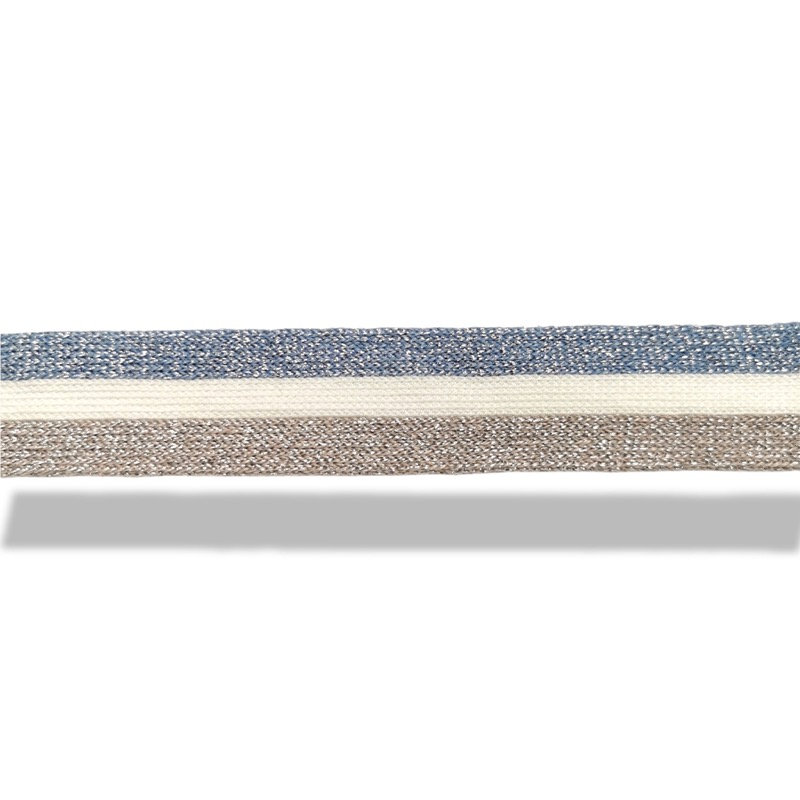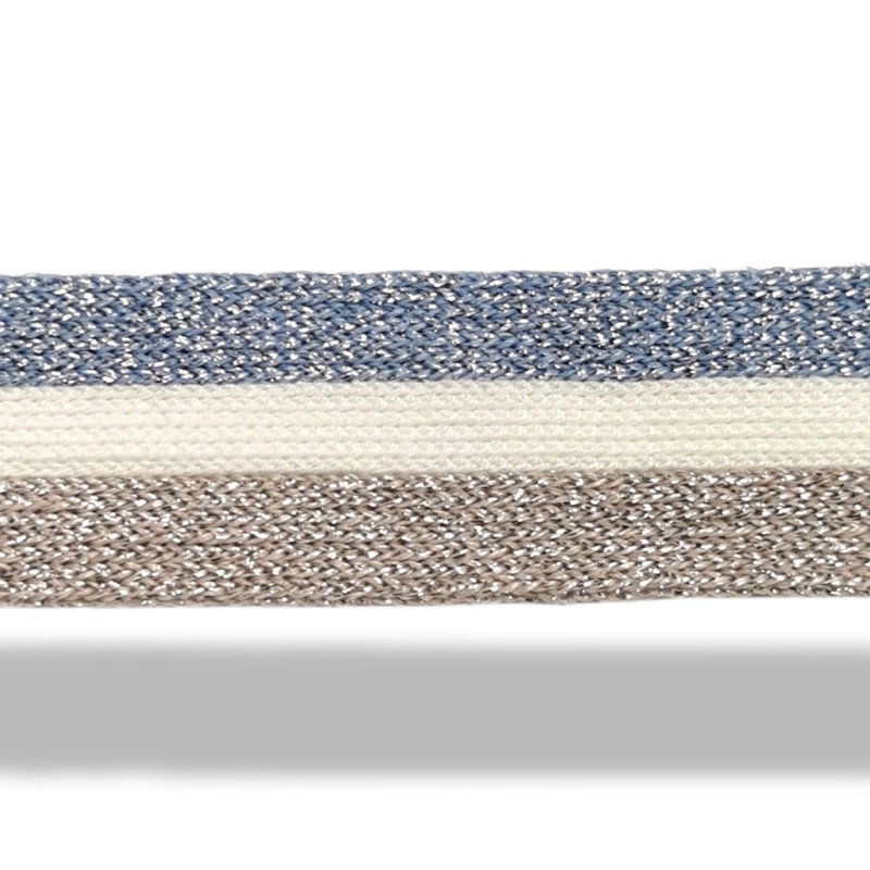 passamaneria realizzata in maglina con una linea centrale bianca e due linee laterali in glitter colorato, che ne delineano i bo