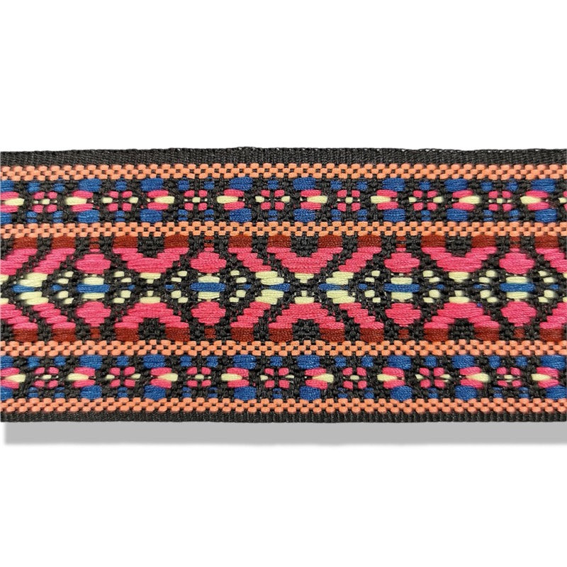 passamaneria realizzata in tema etnico, raffigurante forme geometriche ed interamente ricamata a macchina 45 mm