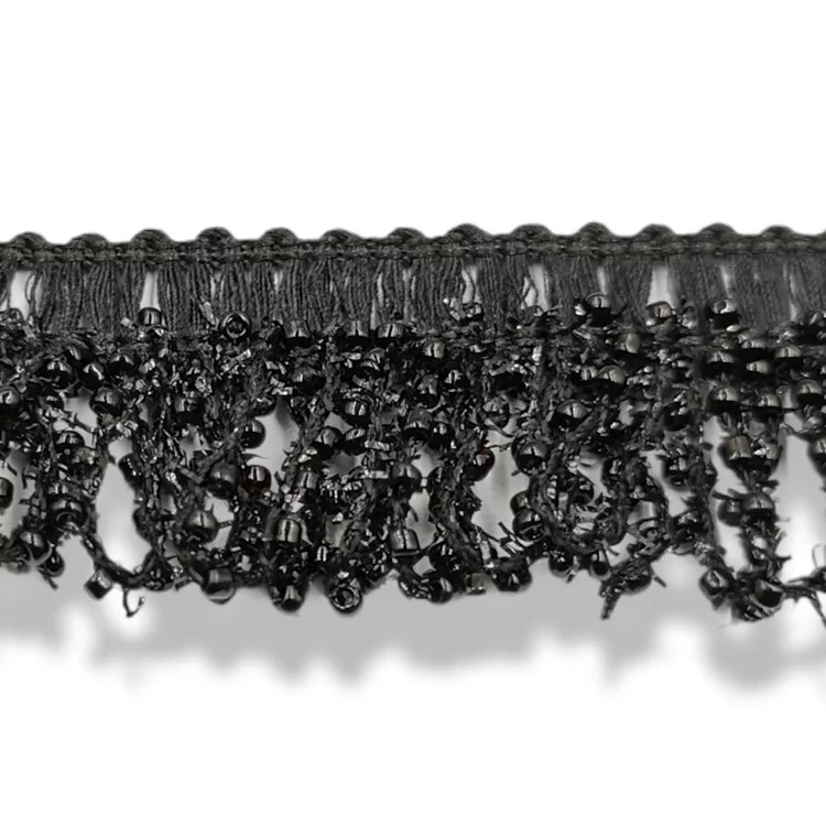 passamaneria realizzata nella parte superiore con ricamo e nella parte inferiore da file pendenti di strass mesh mm 30
