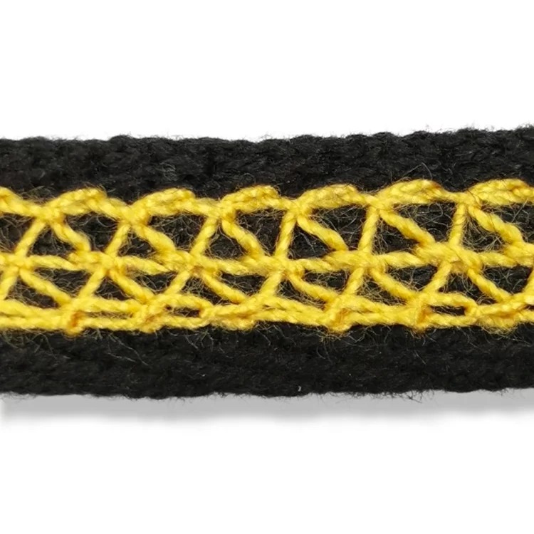 passamaneria realizzata su fondo nero con ricamo in filo color gold mm 10