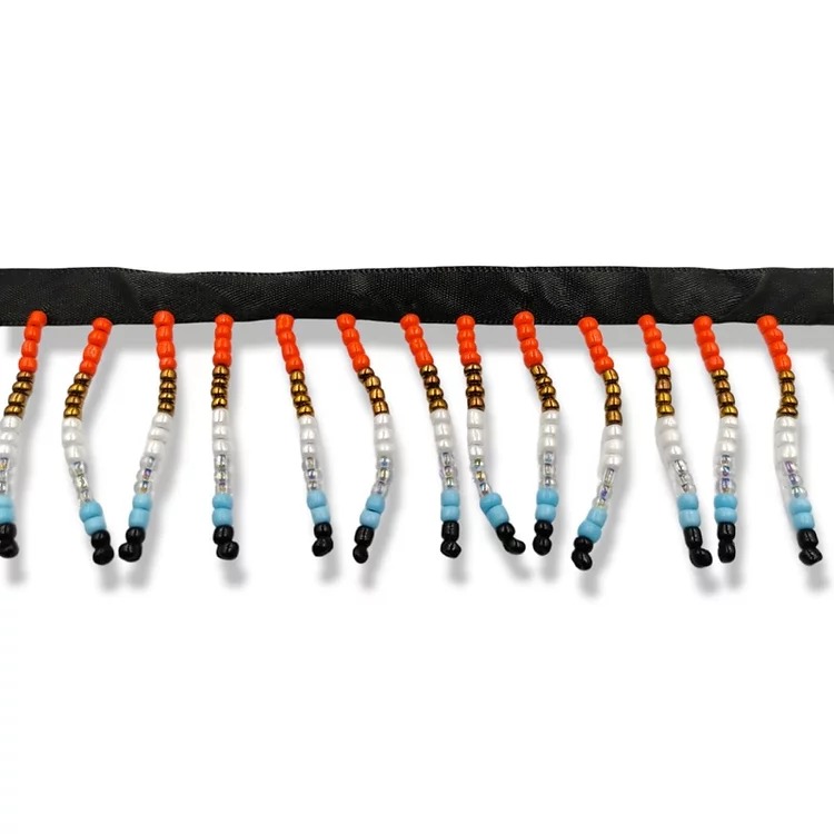 Recensisci per primo “passamaneria realizzata su una base di raso nero, con file di corallini che fungono da frange mm 50”