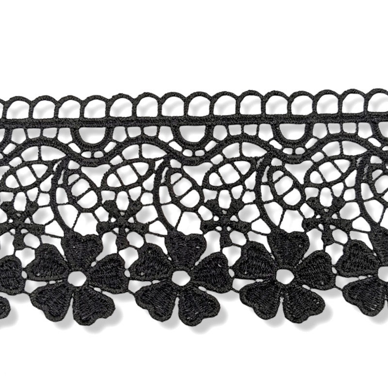 passamaneria ricamata e traforata, realizzata in macramÈ a tema floreale mm 60