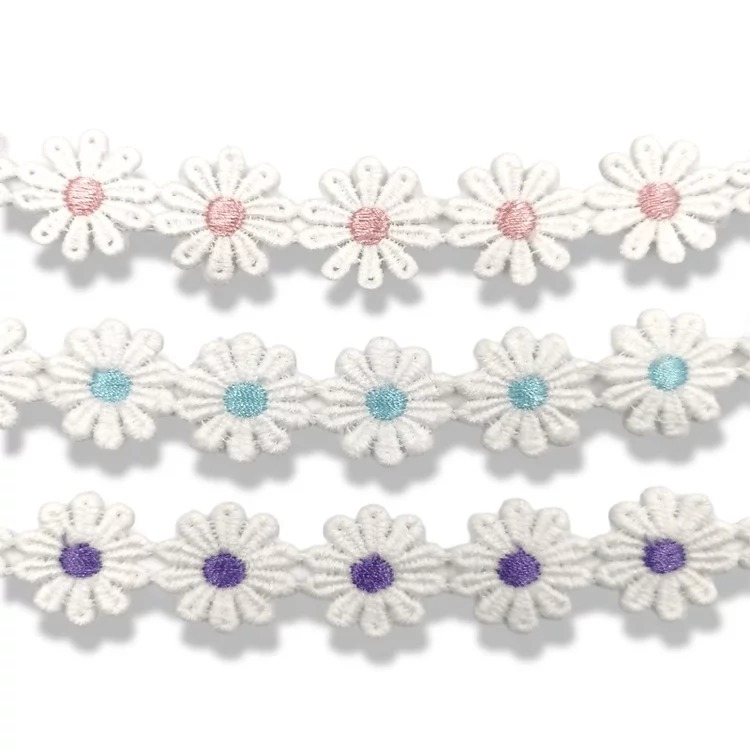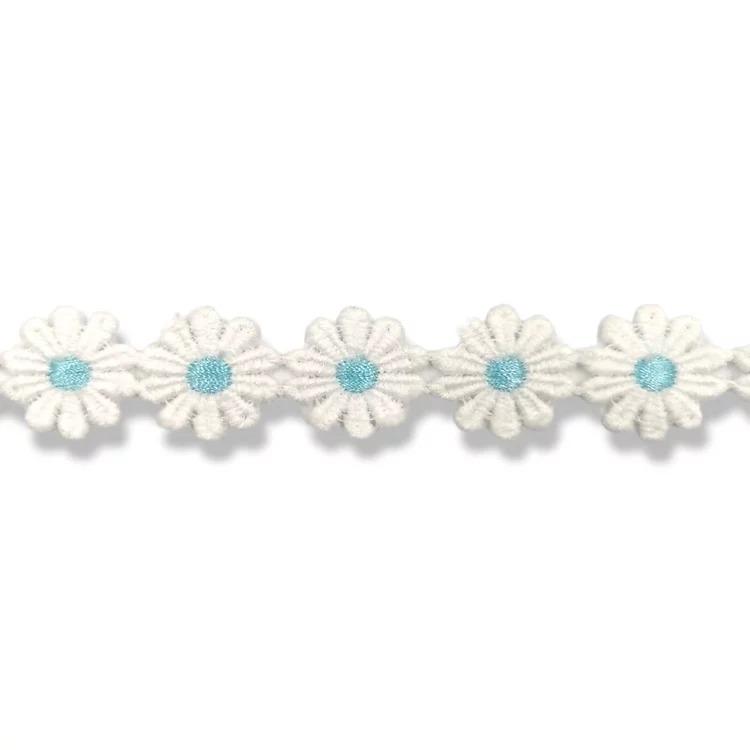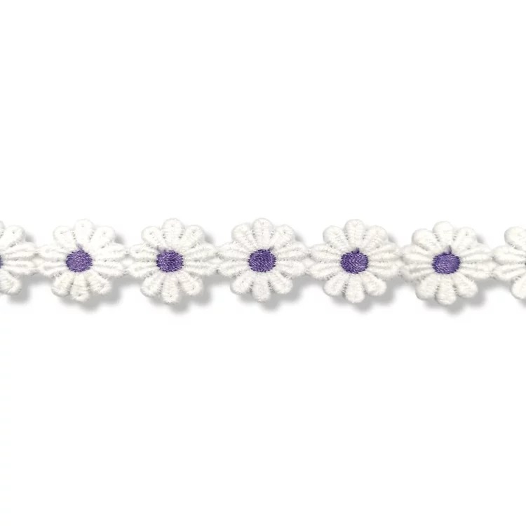 passamaneria ricamata interamente a macchina, raffigurante delle margherite disposte in serie 25 mm
