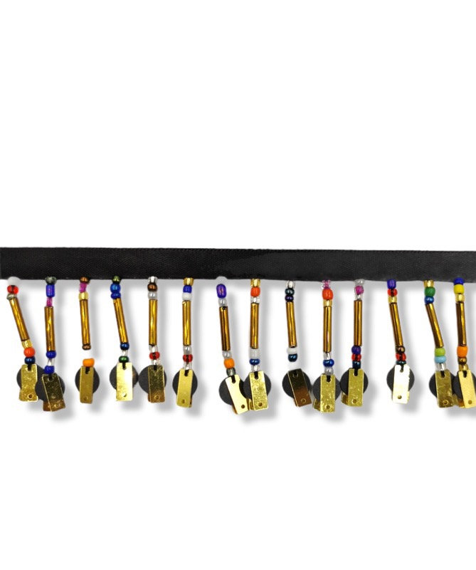 Recensisci per primo “passamaneria su una base di raso nero, con file di corallini, canottiglie ed inserti in lurex oro mm 45”