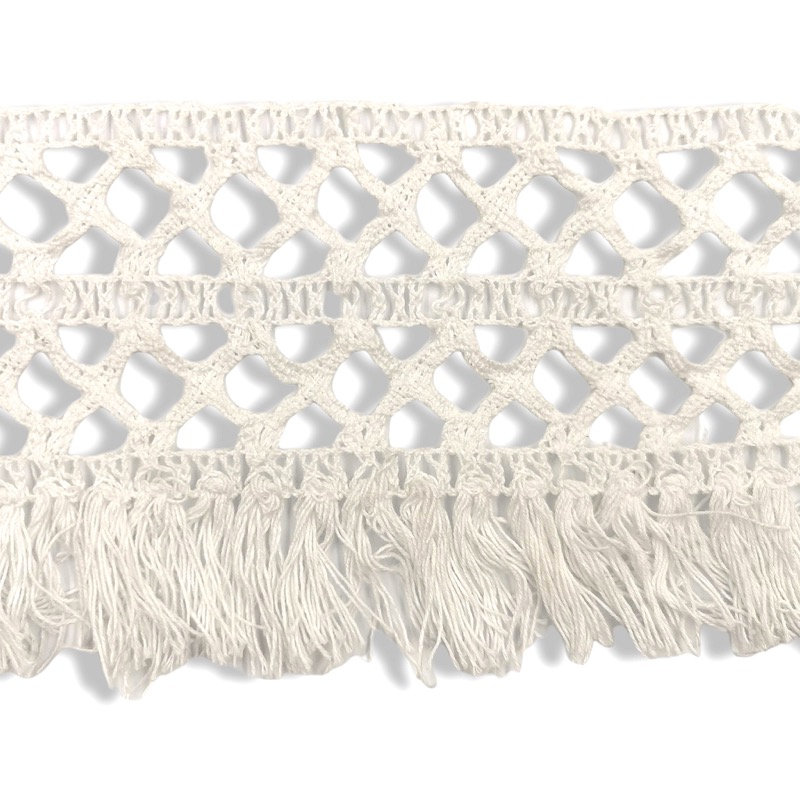 passamaneria traforata interamente ricamata a macchina, la parte superiore È realizzata con disegni geometrici, mentre la parte