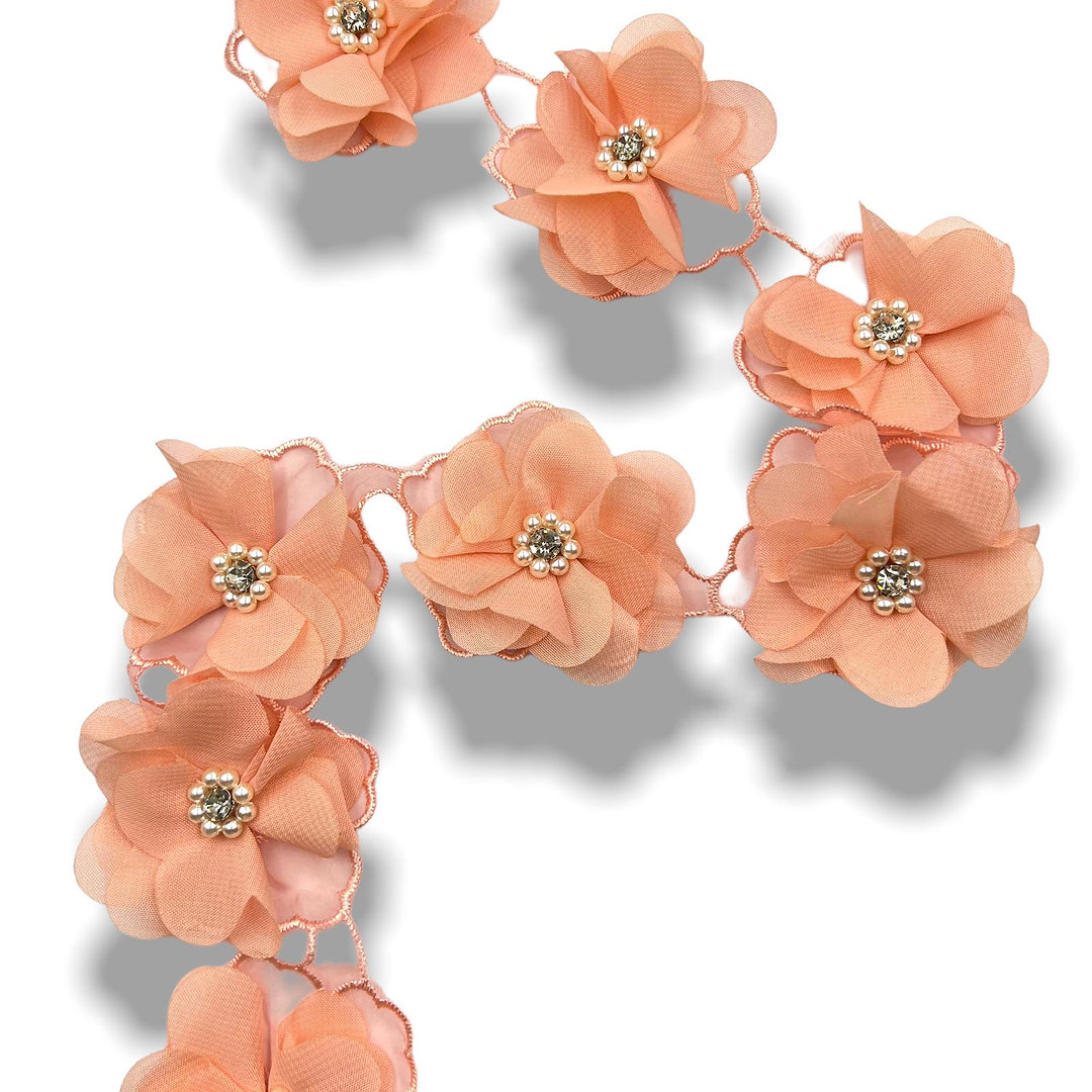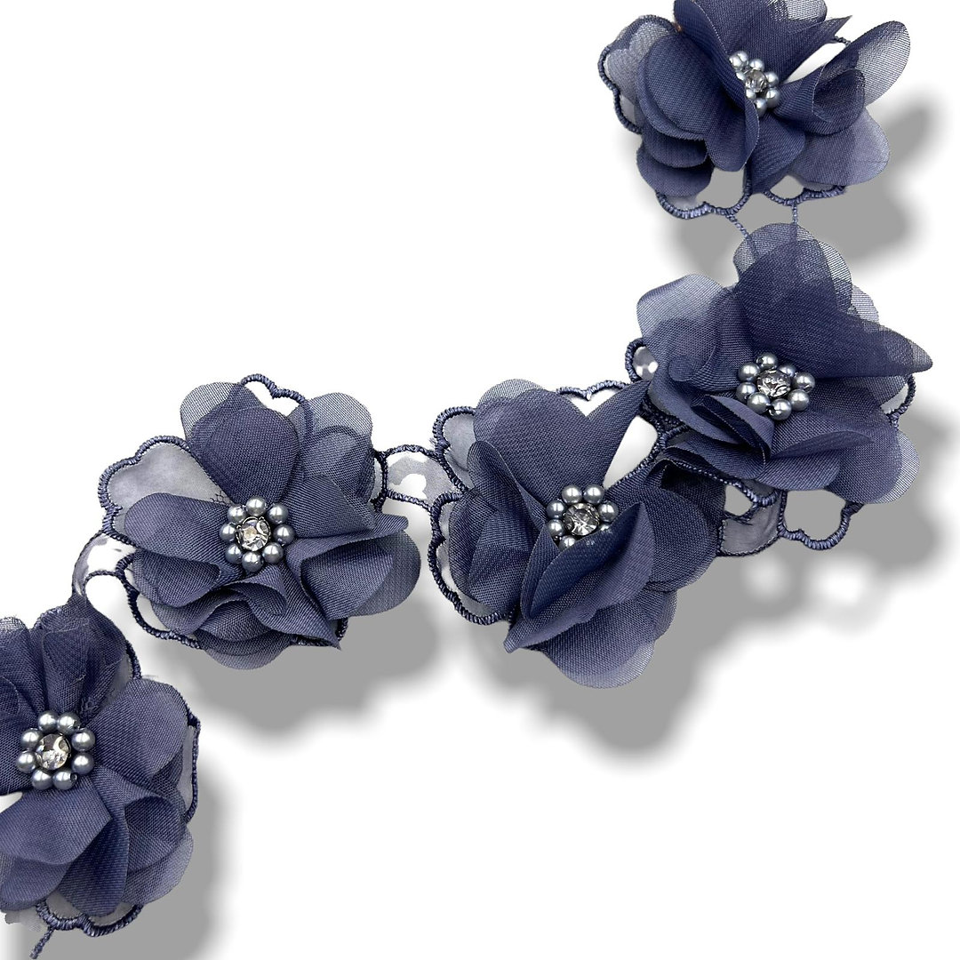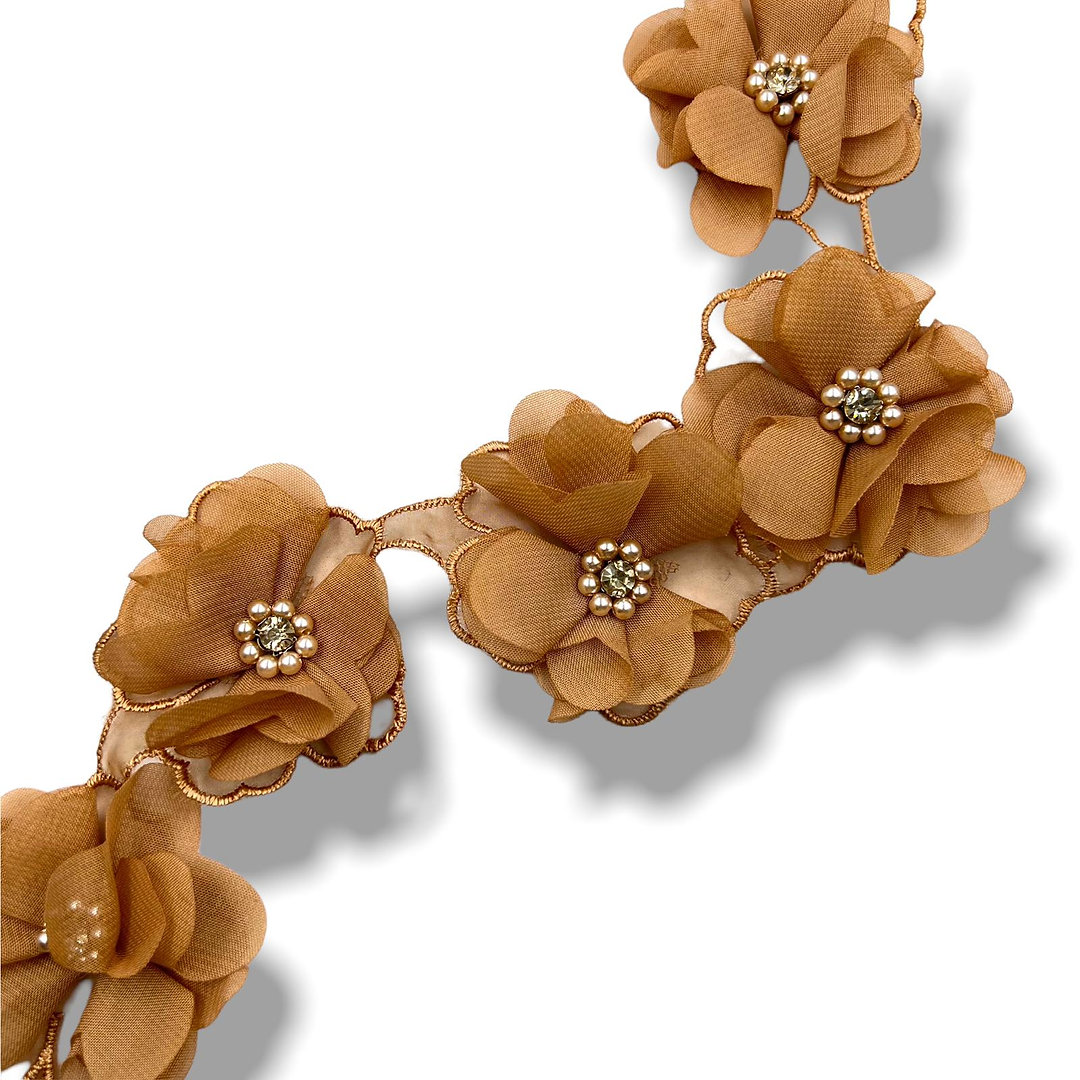 passamaniera fiore in tessuto/organza con perle pietre cucito a mano 5,5cm