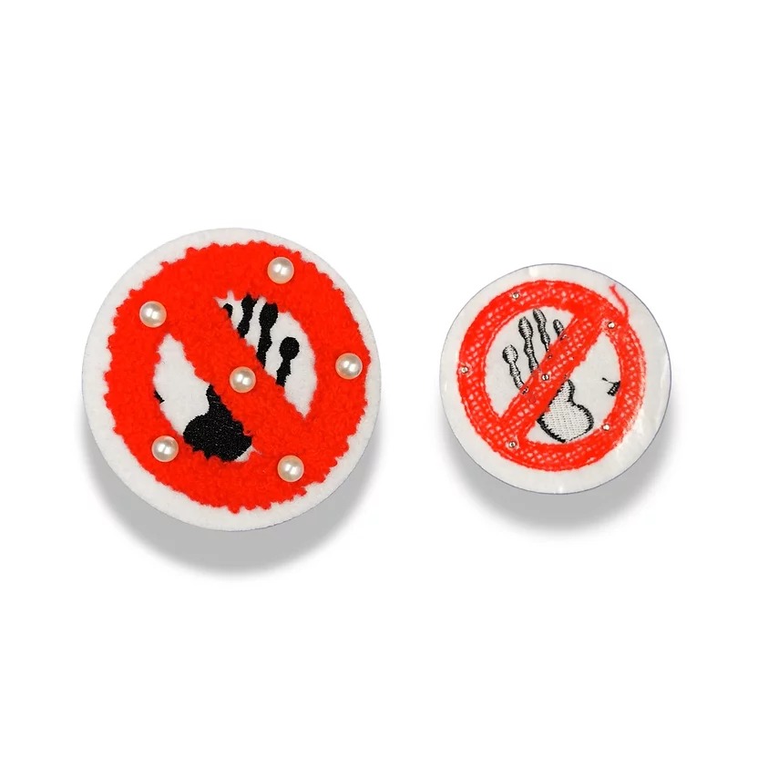 Recensisci per primo “patch termoadesiva circolare e interamente ricamata a macchina in punto spugna e con perline applicate, raffigurante un segnale”