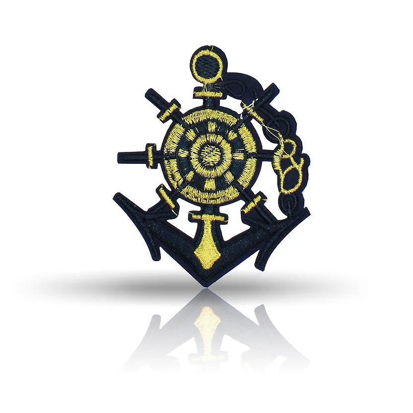 patch termoadesiva e completamente ricamata a macchina, raffigurante il timone di una barca di colore nero al quale vi È applic
