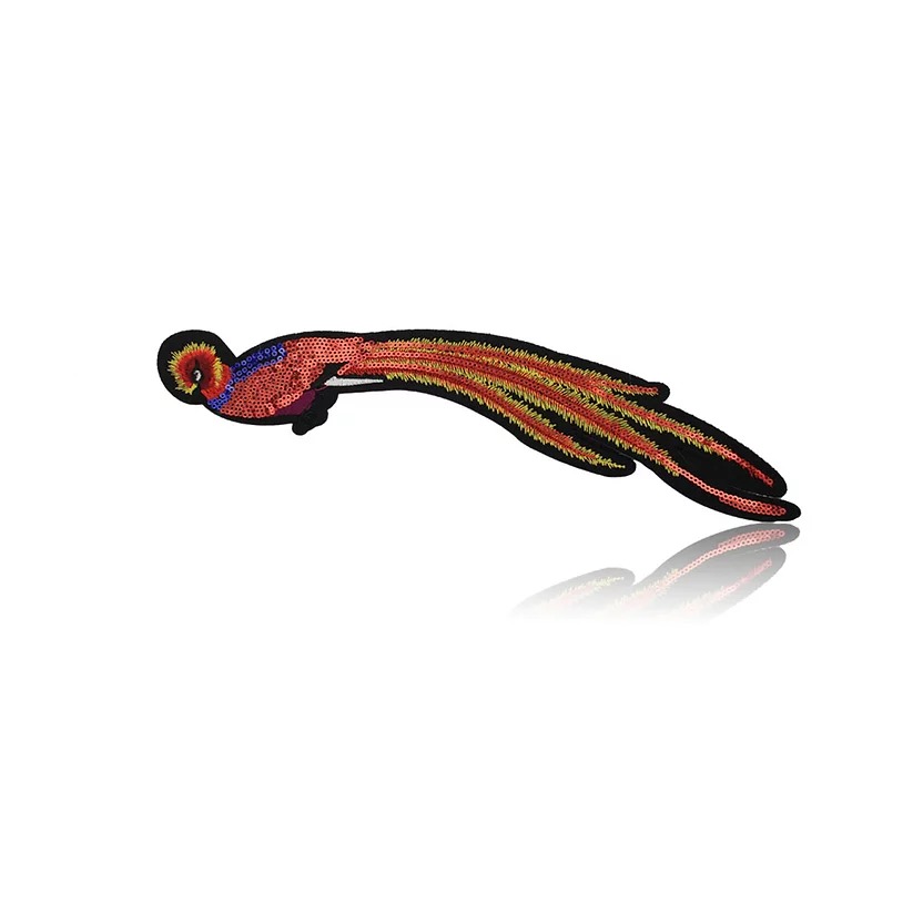 patch termoadesiva e interamente ricamata con colori vivaci e raffigurante un pavone con la coda racchiusa 33,5 cm x 6 cm