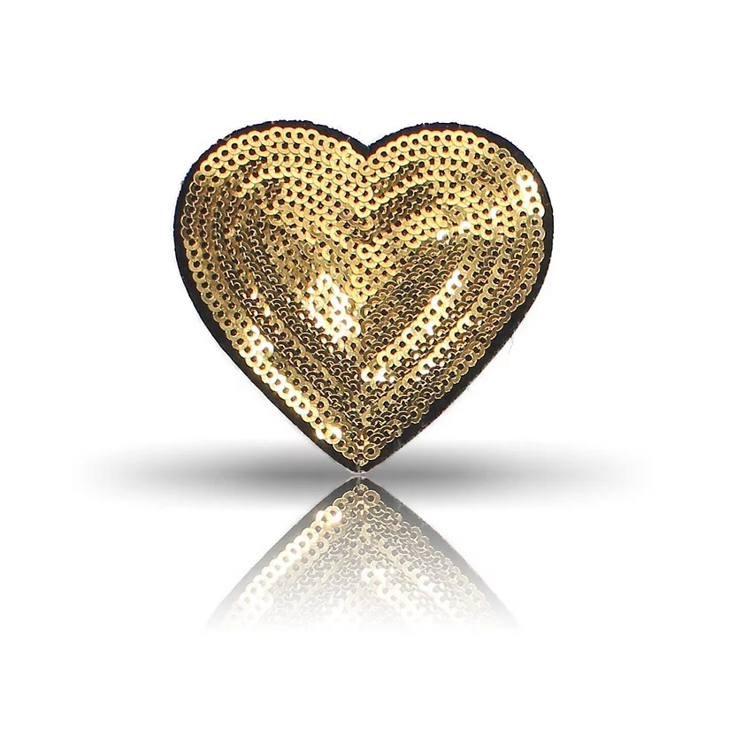 patch termoadesiva e interamente ricamata con paillettes dorate raffiugurante un cuore 6,8 cm x 6 cm