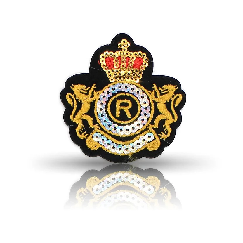 patch termoadesiva e ricamata con paillettes e raffigurante blasone militare inglese 6,8 cm x 7 cm
