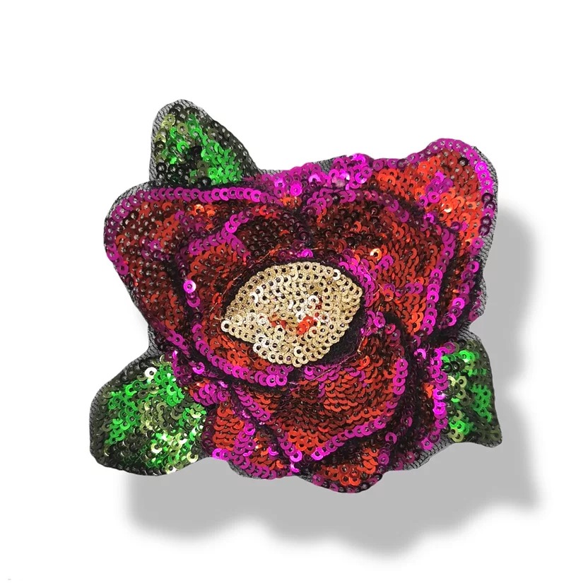 patch termoadesiva e ricamata in paillettes con nuances di colore fucsia 12 cm x 9,5 cm