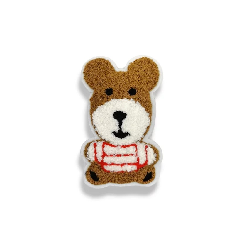patch termoadesiva e ricamata in punto spugna rappresentante un orsetto 6,4 cm x 9,7 cm