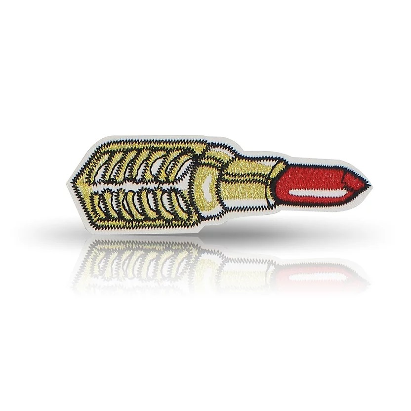 patch termoadesiva e ricamata, raffigurante un rossetto di colore rosso intenso 3,2 cm x 9,8 cm