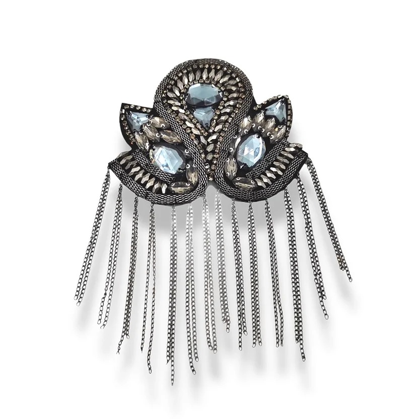 Recensisci per primo “spallina realizzata con pietre in acrilico, file di strass e maglie metalliche. i pendenti sono formati da catene in metallo 12”