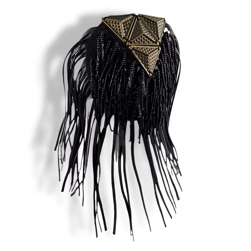 Recensisci per primo “spalline realizzate con frange in eco-pelle, file di corallini e pietre 16 cm x 20,5 cm”