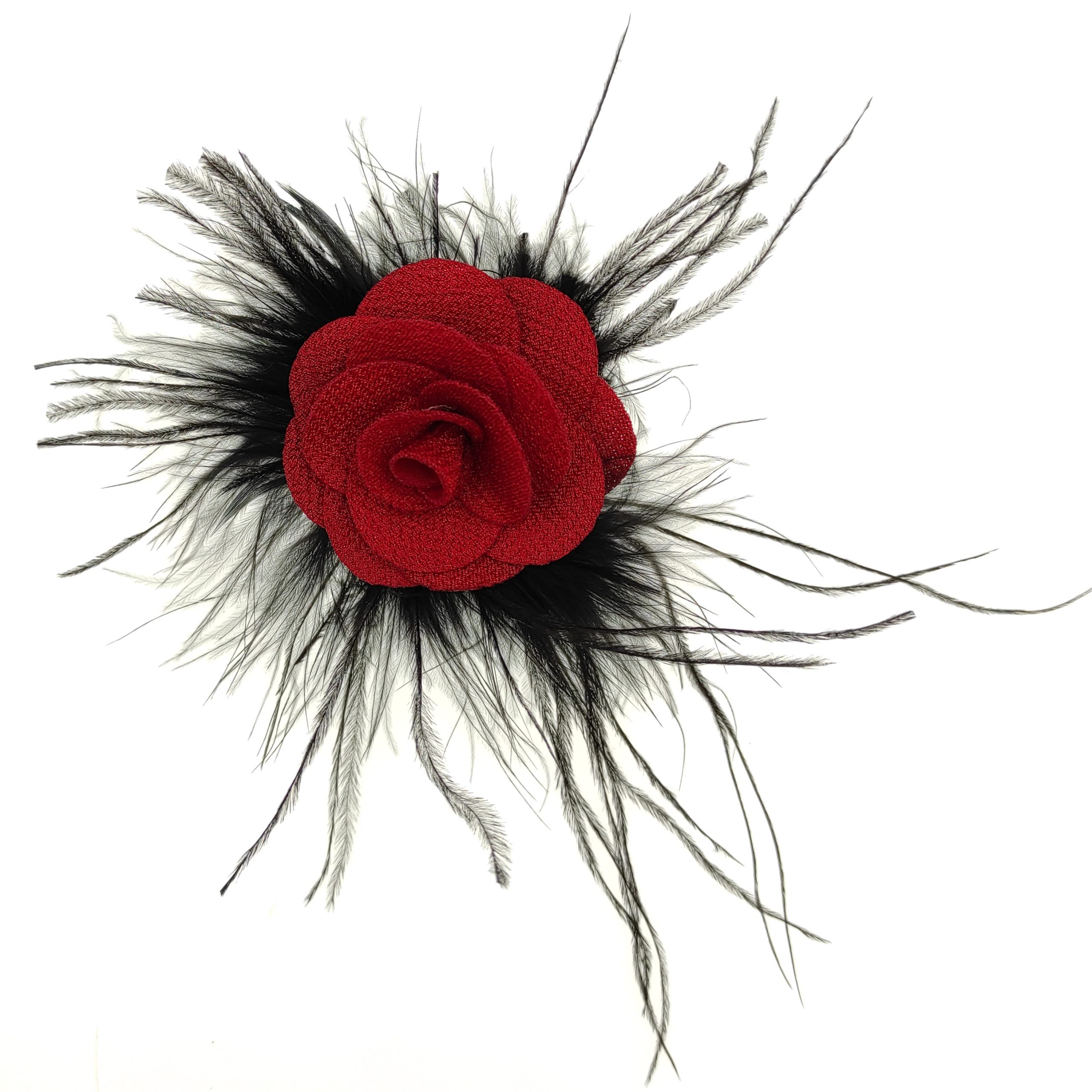 spilla con piuma e rosa